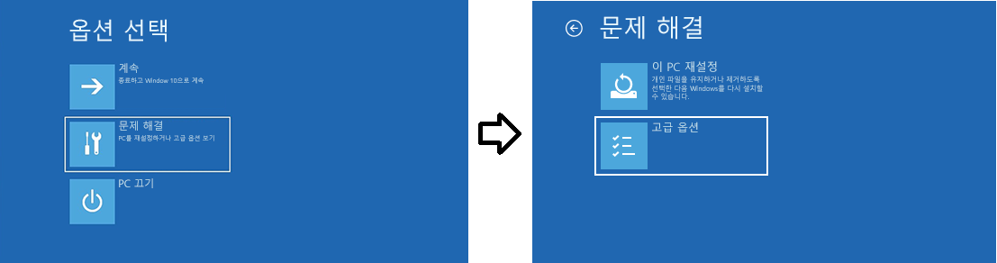 1) 컴퓨터를 전원을 켠 뒤 강제로 전원 버튼 길게 눌러 강제 종료를 3회 반복해주세요.
